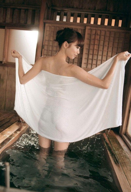 全裸にバスタオル1枚というドキドキさせる格好の湯上がり美人たち